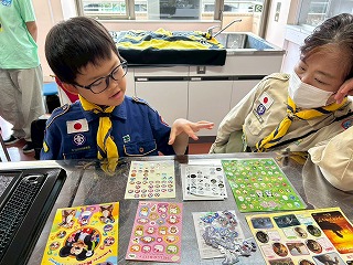 20団との合同で隊集会。7月のハイクに備えて、世界のことを学びます。世界スカウトジャンボリーの開催地を学習したり、国旗かるたで楽しく学んだあとは、保護者の方のお手伝いをいただき【英会話】の練習をしました。これで、次の大阪城ハイクで外国人の方に話しかけてみよう!その後は公園で外遊び、本日はおやつも海外のおいしいおやつです。