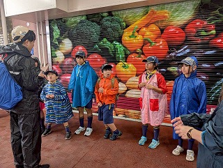 夏の暑さは9月になっても治まりませんが、午後は周辺をめぐるポイントラリー。万博イヤーというこおで、ミャクミャク三姉妹、さらにアミャクミャクまで登場!?楽しい導入を聞いていよいよスタート。