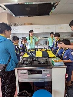 カブも張り切ってビーバーを指導し、新たな仲間への期待に胸膨らませました。昼食は、従来はマクドですが、経費節約でコロッケホットサンドとコーンスープ。みんなでおいしくいただきました。もちろんカブにもおすそ分け。そのあと、入隊説明会と制服合わせを行い、無事終了。