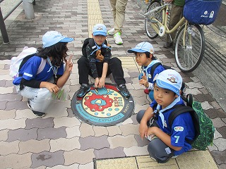 まずは大物駅を出発。地図を見て標識や危険なところ・マンホールなどを探すミッションをこなしながらサンシビックまで市内ハイク