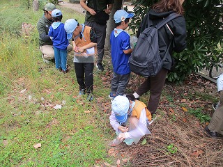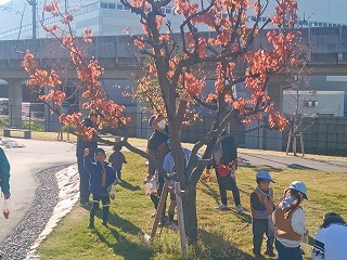 館に移動し、準備。小田南公園で秋をさがします。いろいろな紅葉を探し、工作材料
