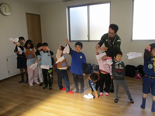 4月からカブの仲間になる予定のビッグビーバー5名を迎えての隊集会。カブ隊は3名欠席でしたが、ビッグビーバーのおかげで12名と賑やかな隊集会に。まずはお互いの自己紹介、その後基本動作やスカウトスキルを使用したゲームなどを行いました。大変優秀なビッグビーバーでしたが、カブのスカウトたちもしっかりお兄さん・お姉さんとして指導をしてくれていました。午後からは、カブ隊最後のお別れ組集会のため組ごとに何をするか、話しあいの組集会。予想外にすんなりと決まっていたようです。今日の集会が雨だった分、お別れ組集会では外で思い切り遊べるといいのですが・・・。